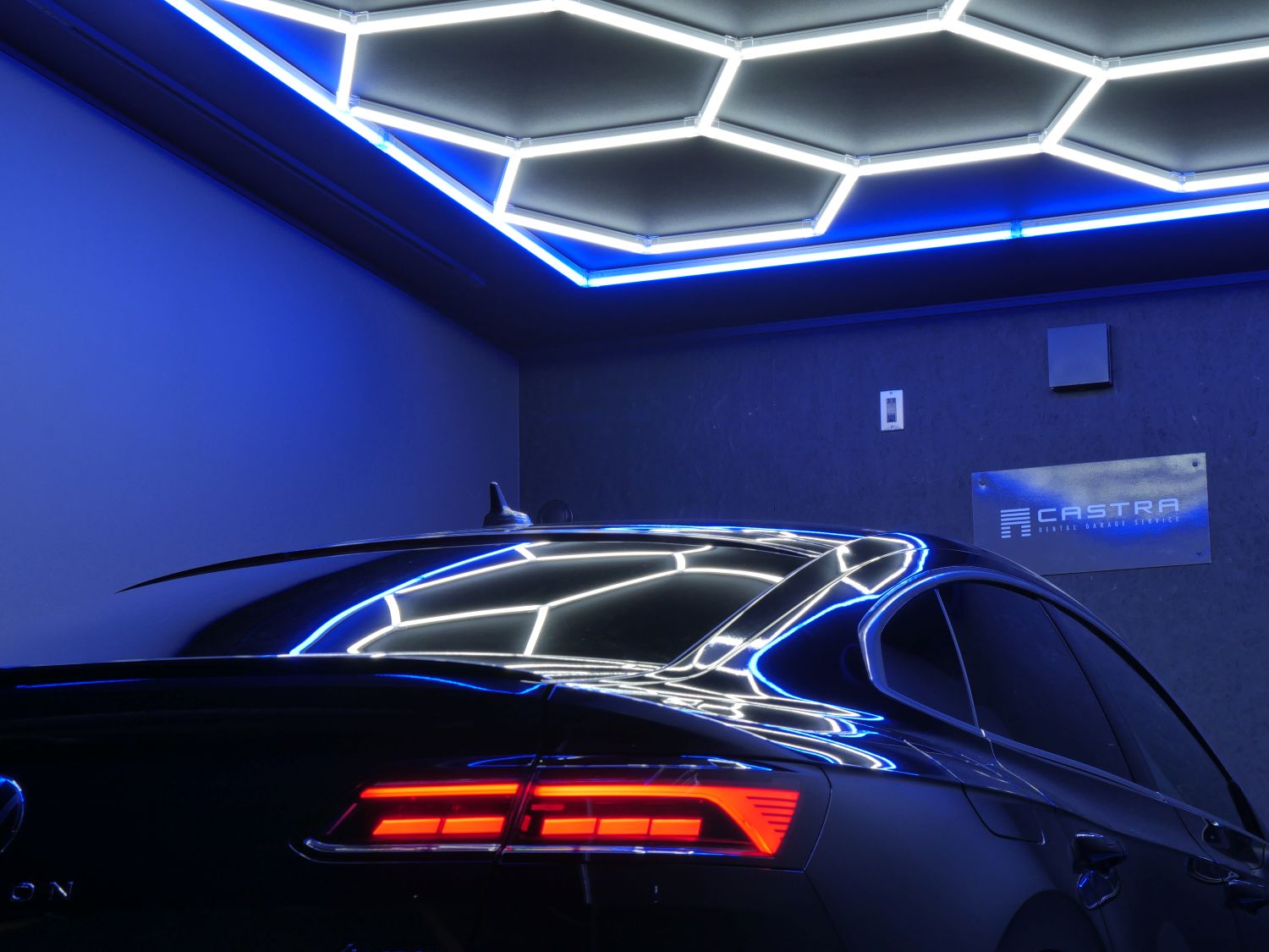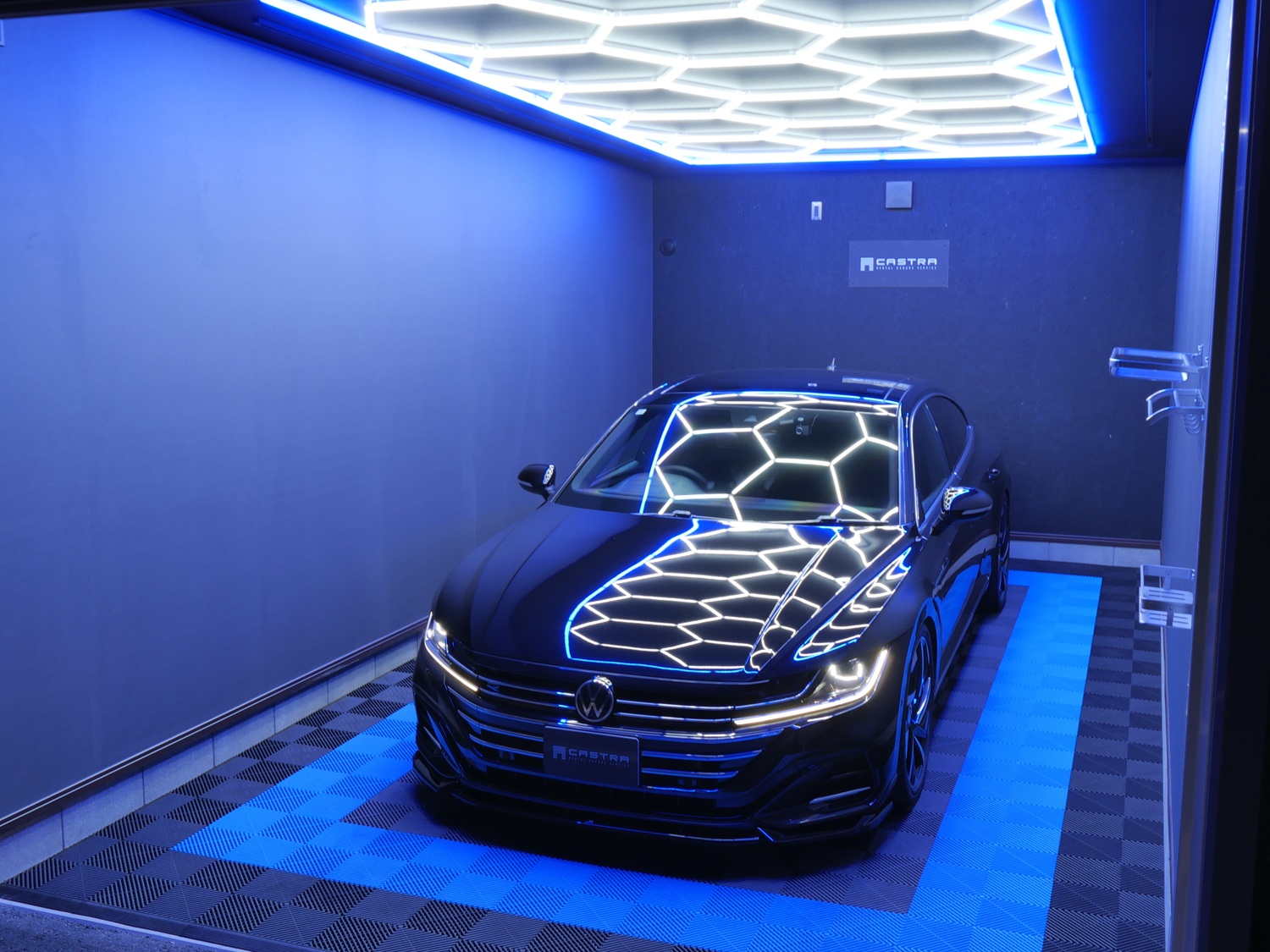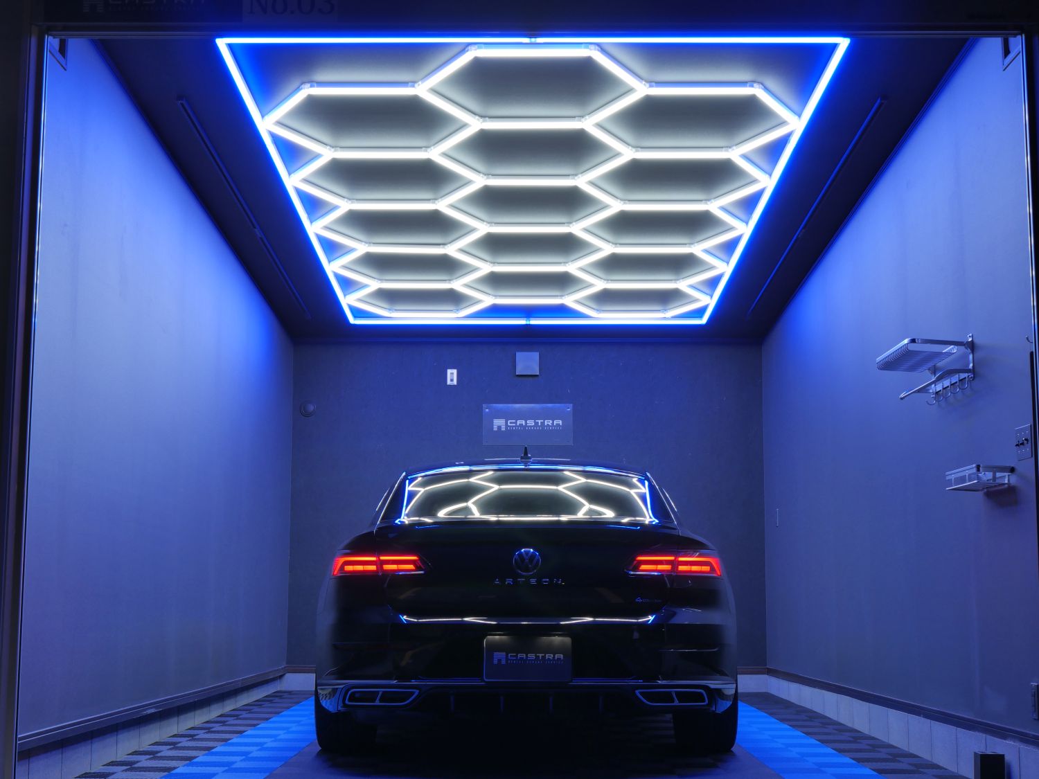 東村山市栄町にレンタルガレージ【CASTRA-カストラ-】がOPEN!! 西武新宿線「久米川駅」より徒歩3分の好立地です。 各ユニット前には、専用来場用駐車スペースを完備。 ガレージ内への保管用お車と、ガレージへお越しいただくお車等、2台駐車可能となっております。 その他付帯設備として、電動シャッター・LED照明・ライディングレール・スポットライト・専用入口ドア・ 換気扇・高位置コンセントを二箇所ご用意。 新たに増設された、約27㎡のガレージ上部には、ホワイトとブルーのハニカムライトを設置。 床部分は、それぞれブルー/ブラック、レッド/ブラックのマットタイルを設置し、近未来的な空間に仕上げました。 ハイルーフ駐車場なことに加えガレージ内は約18㎡~の広さがございますので、 タイヤ・車部品等お荷物の保管やガレージ内での作業も可能です。 24時間利用可能。コンセント電源利用可能。 現地にてご内覧可能ですので、是非お問い合わせください。