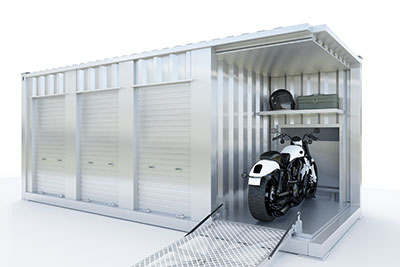 豊田市若林西町の便利な貸しコンテナ! 名鉄若林駅まで約1km 防災倉庫に最適なレンタルコンテナ! ついに大型スロープ付バイクコンテナ空きました。 バイクの出し入れ簡単で収納時はスロープが扉代わりになり二重扉に!! セキュリティー面も大丈夫♪大切なバイクを護ります☆★☆