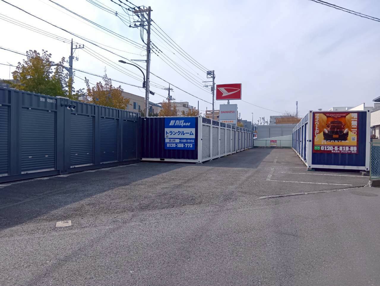 西東京市富士町にトランクルームがOPEN!!「いなげや 西東京富士町店」「ダイハツ 東伏見店」が目印。新青梅街道沿いでアクセス良好です。東伏見稲荷神社・保谷中学校すぐ側。場内はアスファルト舗装済で車の横付けもできる広さで便利。コンパクトで家財や趣味用品などの保管に適した1.3帖タイプから、仕事で使用する脚立や工具などの収納に便利な8.0帖タイプをご用意。24時間出し入れ自由。現地の内覧も可能です。専用の南京錠完備。